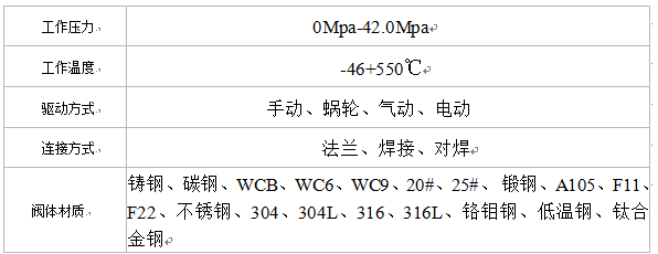 進口高溫高壓球閥的技術參數