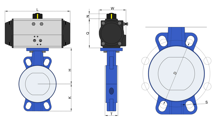 氣動執行器通過壓縮空氣提供動力,驅動閥桿帶動閥板進行精確的旋轉運動,從而實現對介質流量的有效控制。該蝶閥整體結構緊湊、外觀精美,操作靈活便捷,在各種工況下均能穩定可靠地運行。