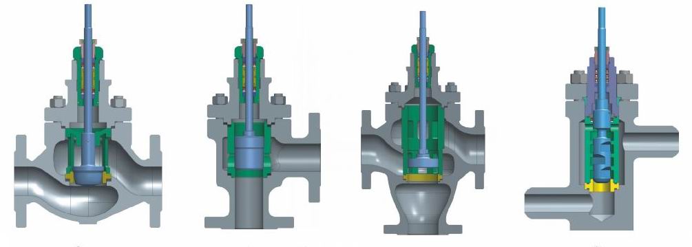 角形閥體除外形為直角形外,其他與直通閥體完全通用。具有結構緊湊、道路簡單、阻力小等特點。特別適用于易枯焦,易堵塞,高粘度的工況。